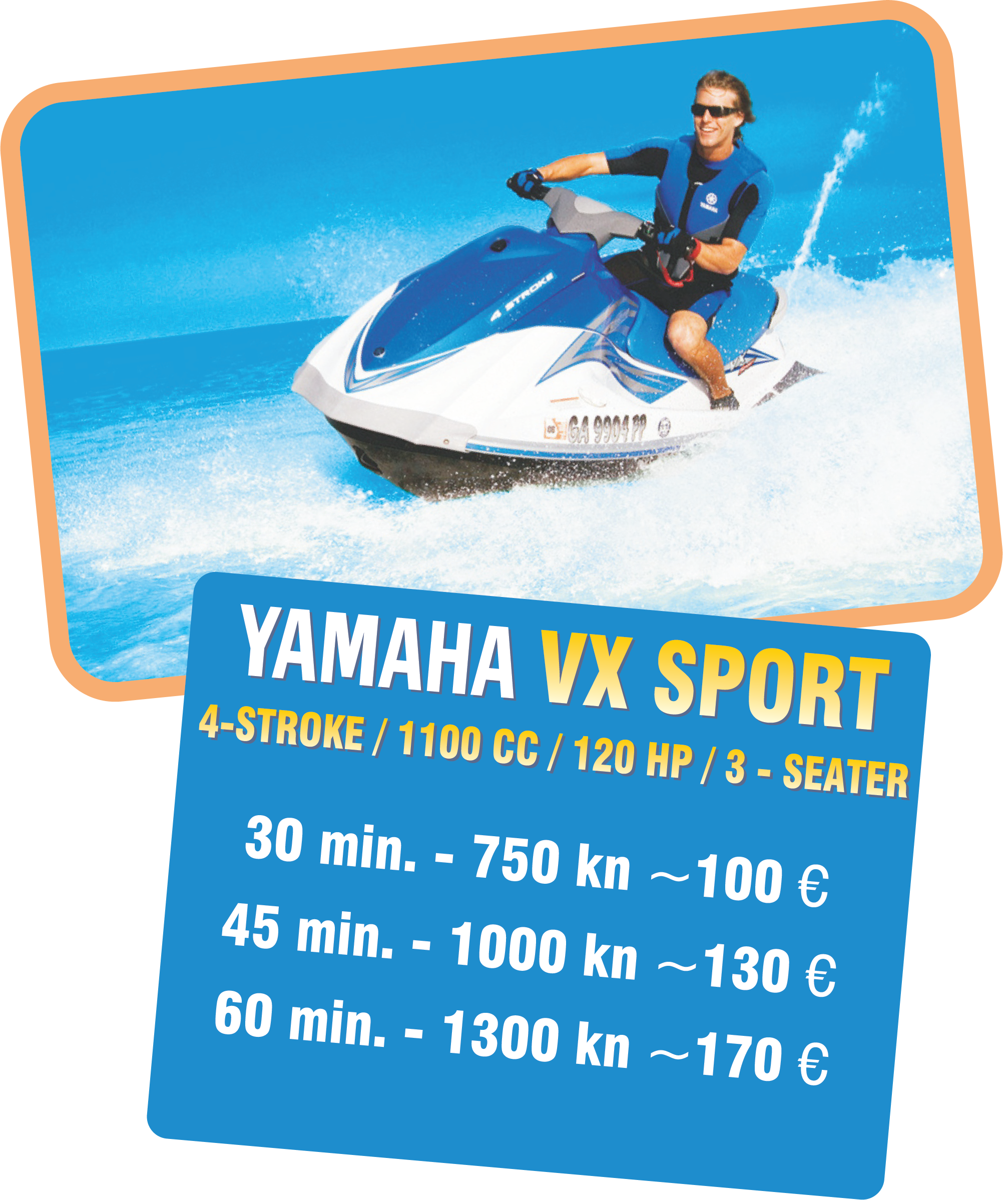 Sporty yet practical, Yamaha VX Sport shows off the dual aspects of its personality with a sturdy black hull, dynamic performance and outstanding dependability.