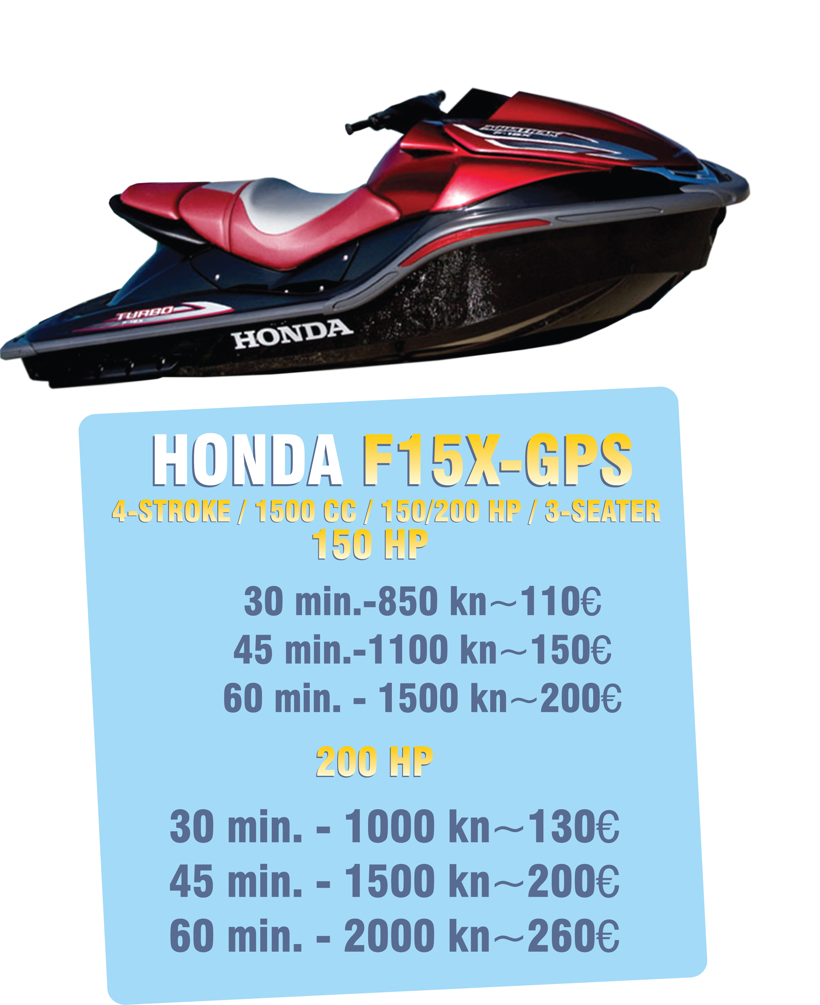 Distinguished by its Candy Red color, Honda AquaTrax F-15X GPScape features a standard GPS navigation system. A flip-down boarding ladder and two-tone seat are also specific to this model, which is powered by a 200-hp turbocharged/intercooled engine.